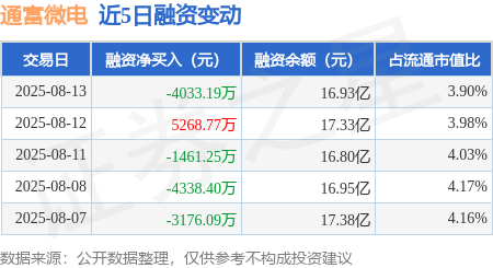 本站消息,8月13日,通富微电(002156)融资买入1.72亿元,融资偿还2.13亿元,融资净卖出4033.19万元,融资余额16.93亿元,近20个交易日中有11个交易日出现融资净买入。